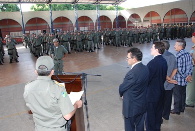 A solenidade, no Pátio Interno do QCG, contou com as presemças do Secretário de Segurança Pública, Robert Rios; Delegado Geral, James Guerra, Promotor José Hamilton; Anfríso Castelo Branco representando a ACADEPOL; Del. Raimundo Leite; Cel J. Oliveira, Coord. Estadual de Pol. Comunitária, Cel Ferreira Filho e demais oficiais e praças.
